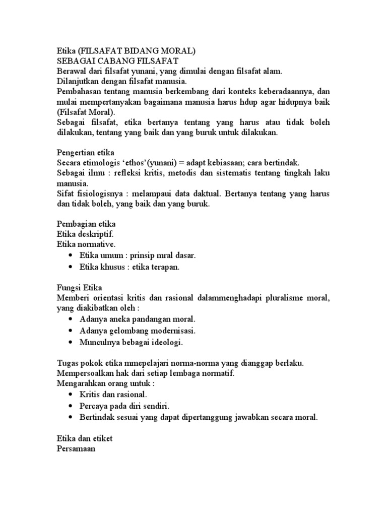 Apabila etika adalah filosofi akan hal yang baik dan benar maka moral adalah bentuk nyata atau tindakan kita moral adalah. Bahkan pluralisme adalah suatu keharusan bagi keselamatan umat manusia antara lain melalui mekanisme pengawasan maknanya lebih dari sekedar toleransi moral atau koeksistensi pasif.3.